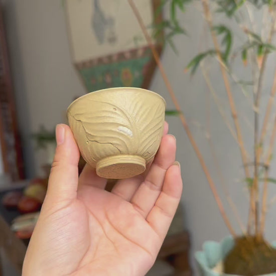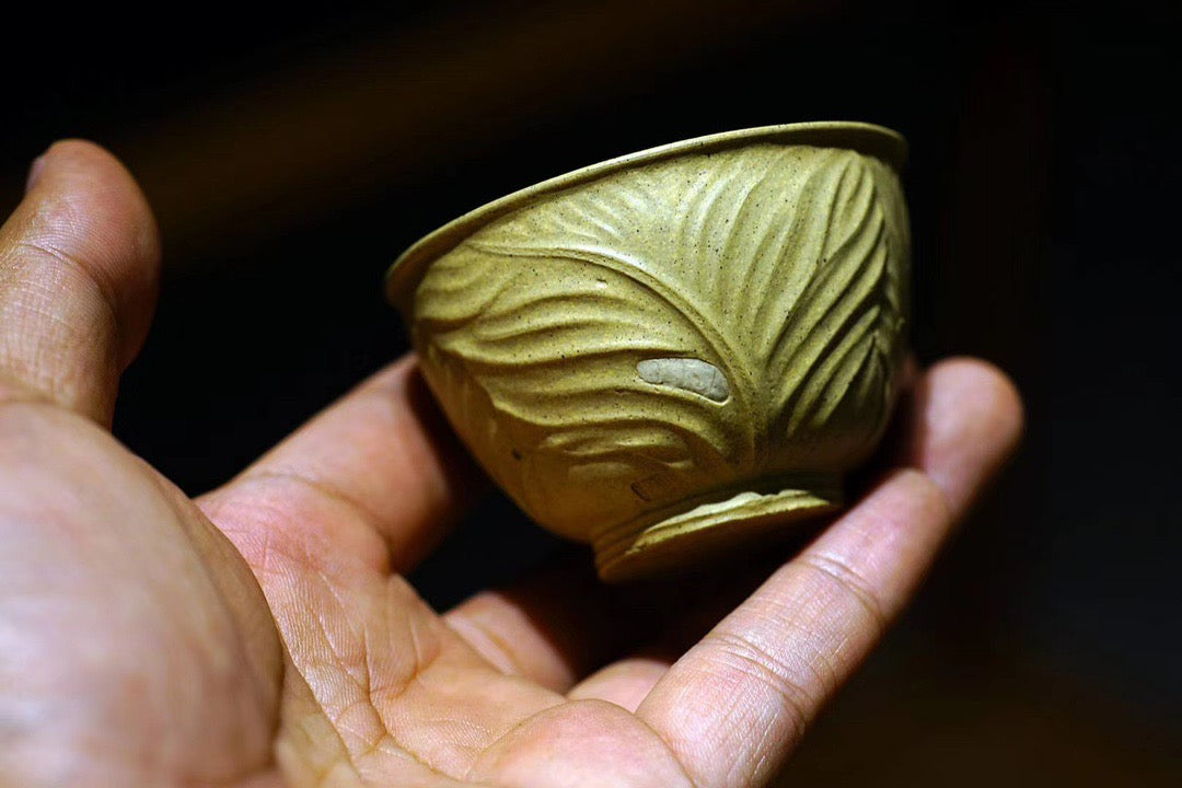 This elegant teacup, with a capacity of 60 ml, is made from the finest Yixing Huanglongshan raw ore green clay, known for its unique texture and its ability to enhance the flavor of tea. The cup is entirely handmade by Liu Xiang, who has honed his craft over many years, ensuring that each piece is meticulously shaped and refined.