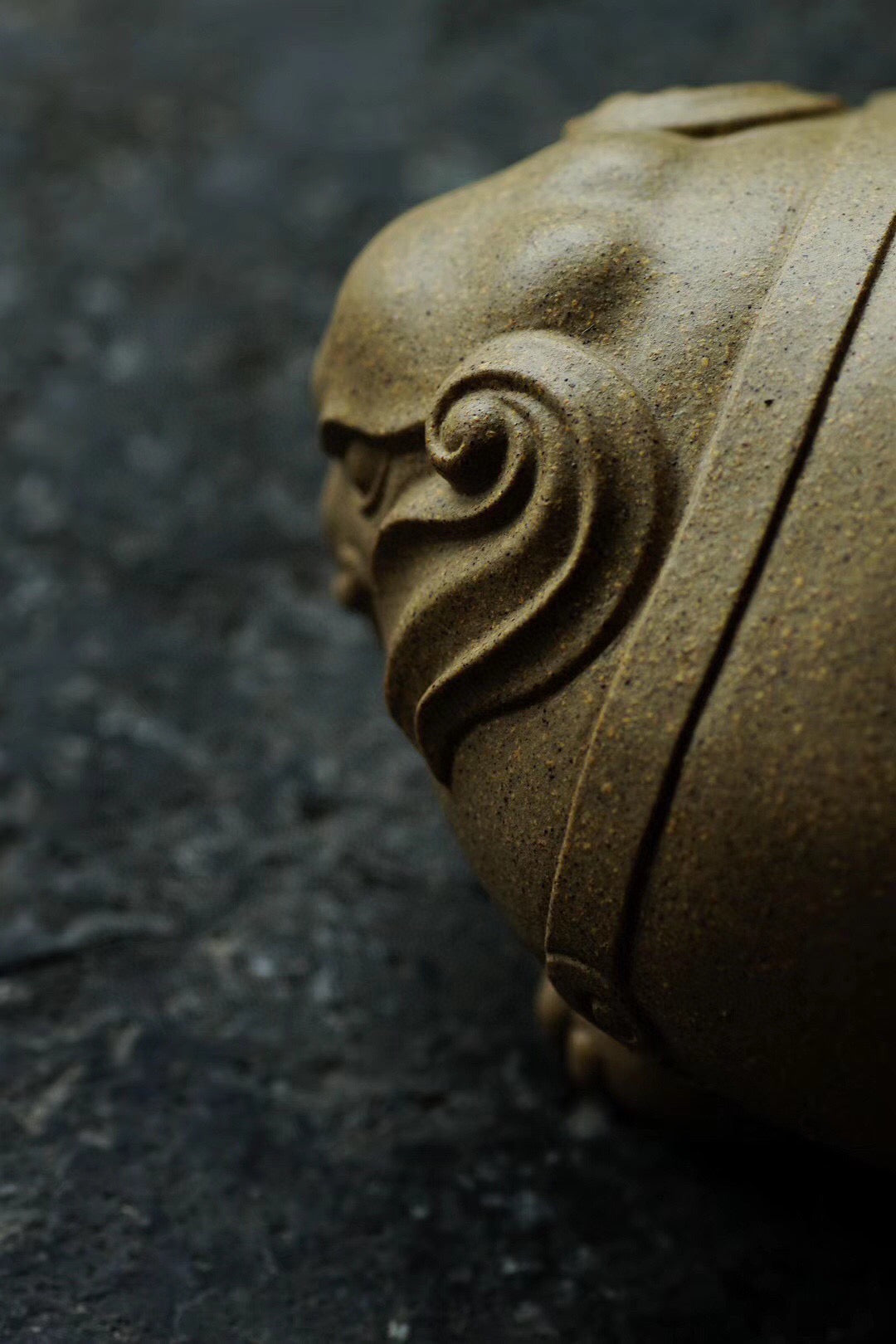 The elephant, known in Chinese culture for its gentle nature and auspicious symbolism, represents peace, good fortune, and prosperity. The word “elephant” (象 xiàng) is a homophone for “auspicious” (祥 xiáng), making this teapet a powerful symbol of blessings and harmony. Its slightly exaggerated form captures a whimsical yet dignified aesthetic, while the details — from the spiraled ears to the sturdy feet — reflect the artisan’s exceptional carving skills.