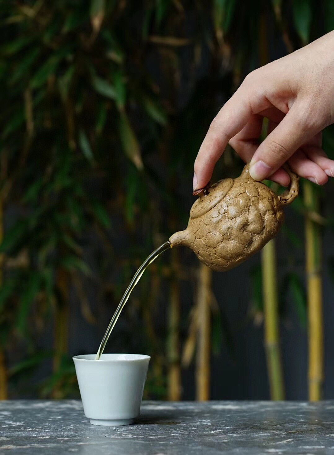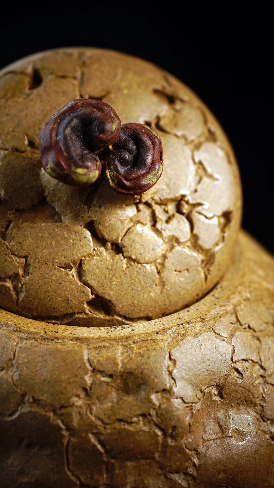 This teapot is shaped in the classic “Gong Chun” style, a tribute to the Ming dynasty official who pioneered this iconic naturalistic form. The exterior mimics the gnarly, textured bark of an old gingko tree, showcasing the natural bumps and indentations that make each piece one-of-a-kind. The pot knob, modeled after a sprouting lingzhi fungus, adds an auspicious and organic touch.