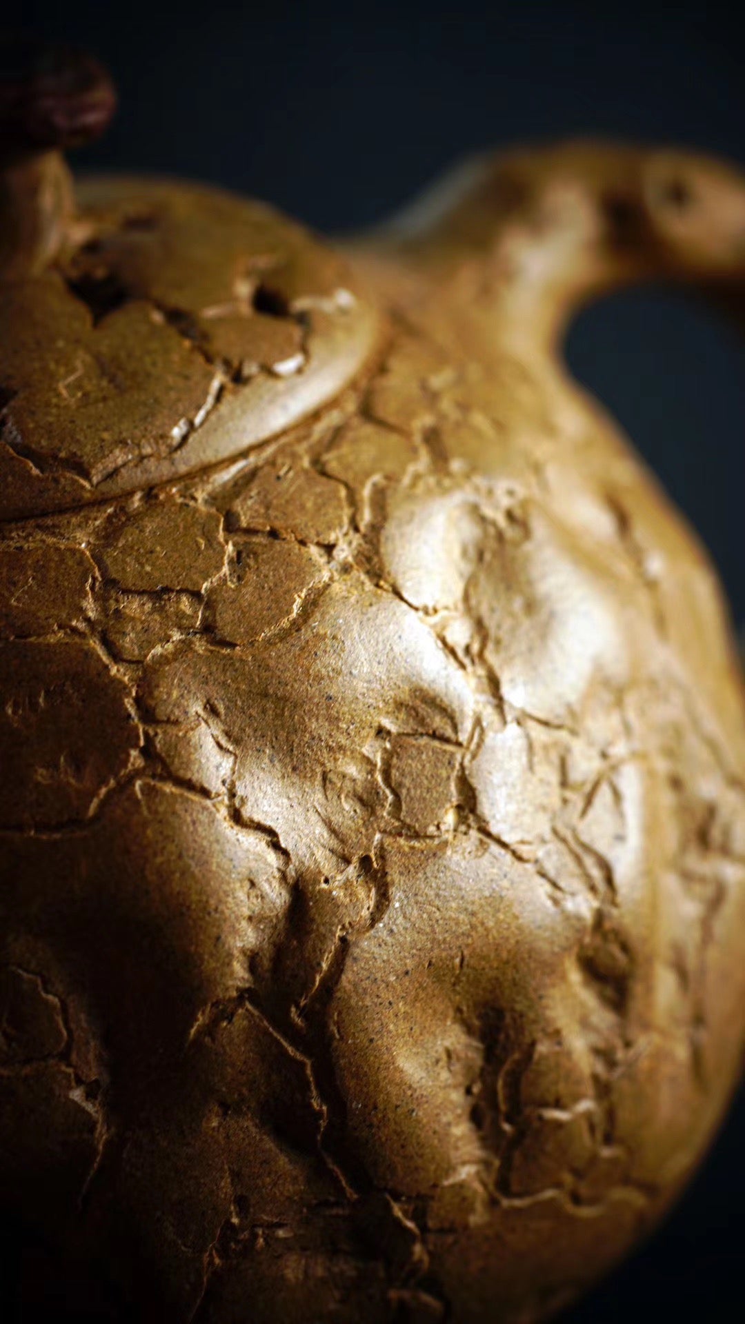 Crafted from authentic original ore Duan Ni, a yellowish clay known for its rich mineral content, excellent porosity, and mellow tea-enhancing properties, this 150ml teapot is perfect for connoisseurs who appreciate both performance and aesthetics. The slightly coarse texture and natural shrinkage patterns add to its antique charm, resembling the primitive strength and beauty of ancient scholar ware.