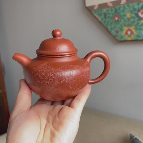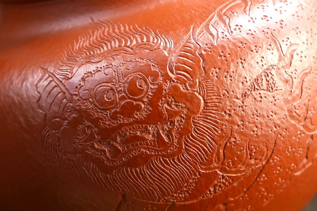 One of the key features of this teapot is the intricate carving of a lion, crafted by the renowned artist Master Zi Yu. The lion symbolizes good fortune and protection in Chinese culture, lending this piece the alternate name "Da Ji Xiang – Lion's Charm." The lion's playful and powerful design further enhances the teapot's cultural significance, symbolizing auspiciousness and prosperity.